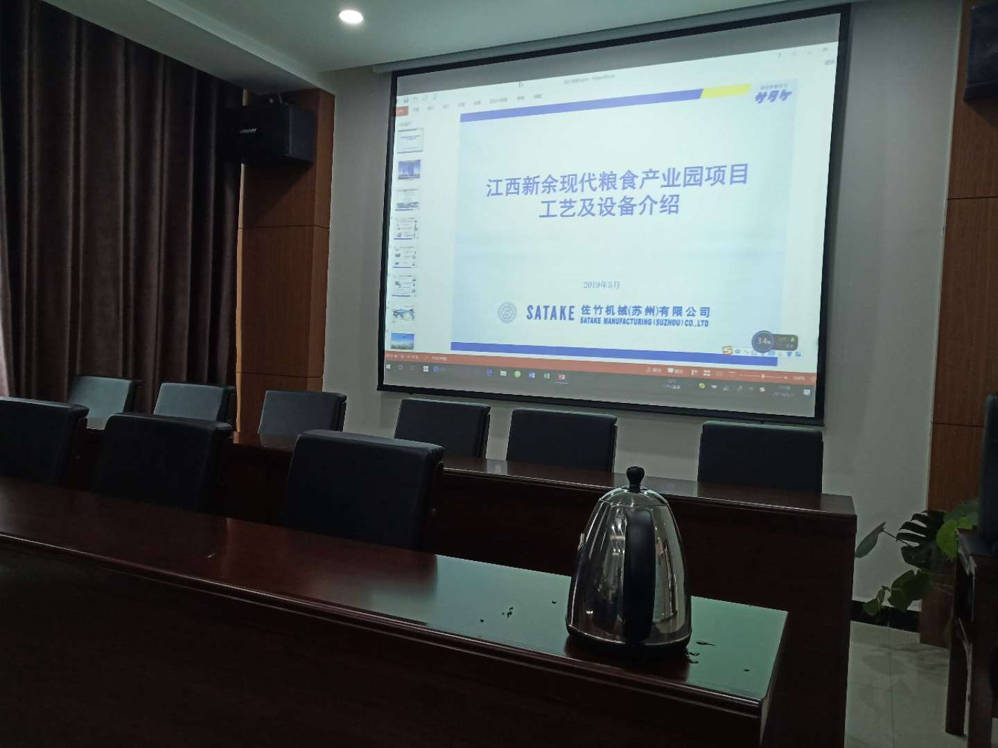 5月7日,日本佐竹机械(苏州)有限公司专家团队来访,与新余现代粮食产业园指挥部有关成员进行了座谈。佐竹公司专家贺为群、李国平、黄春燕以PPT演示的方式,详细介绍了大米、米粉、熟食米饭加工工艺技术、质量检测系统及胚芽米、营养糙米、GABA免洗米、保鲜米饭等产品。双方就大米生产线设计及设备方案、投入成本及产后经济效益、主塾食产品加工等内容进行了深入交流,达成初步合作意向。