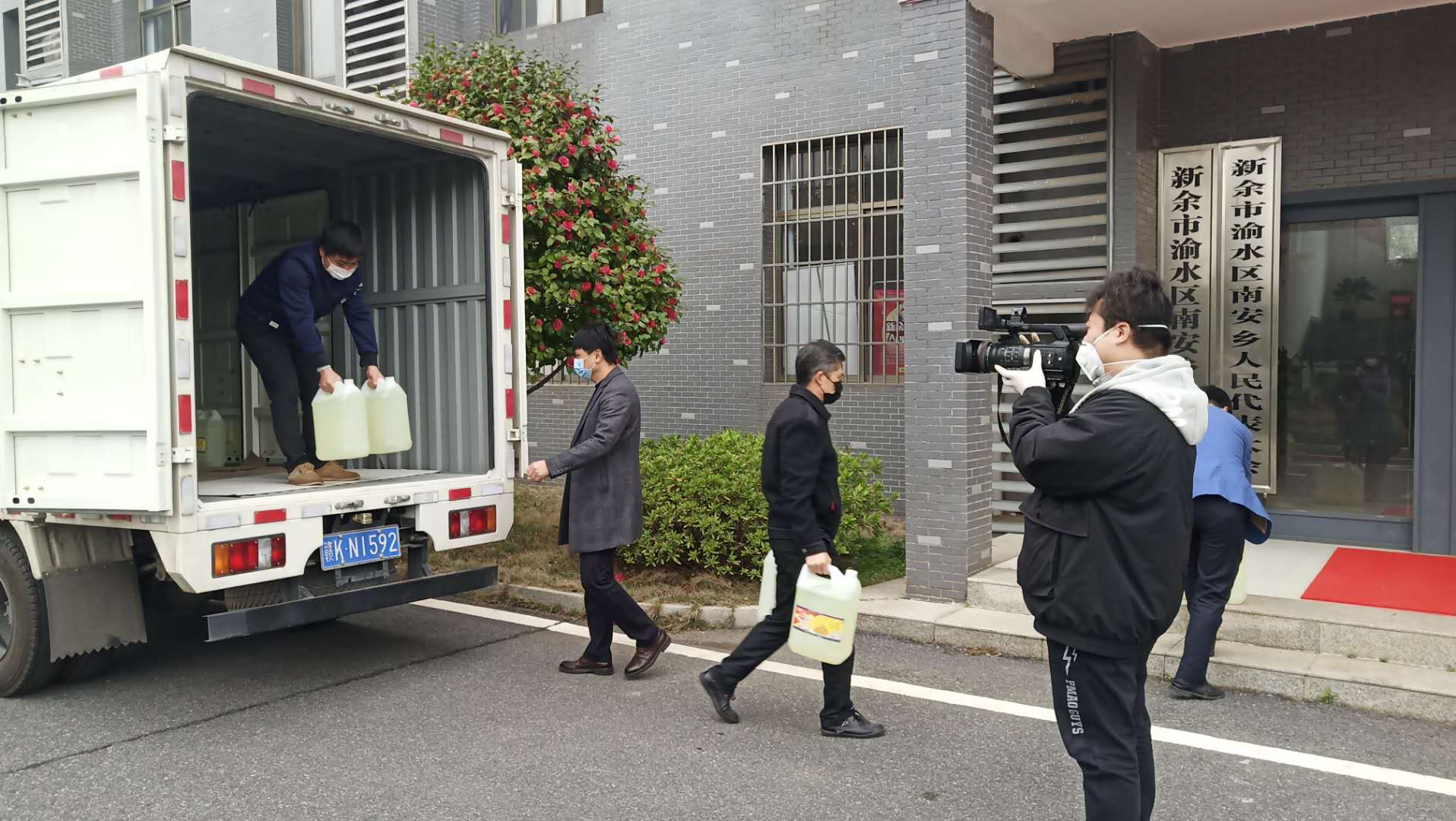 共同战疫,有您有我!228日,新余粮油发展有限责任公司所属子公司新余天晟农业在做好优质稻粮源基地春耕备耕工作的同时,践行国企责任担当,向渝水区南安乡政府捐赠400斤消毒液,并向南安乡政府显华村委、荆兰村委、新生村委、南门村委、东洛村委、朝阳村委、高峰村委、丰洲村委八个村委捐赠1600斤消毒液,助力渝水区南安乡及八个村委打赢这场没有硝烟的战争。
