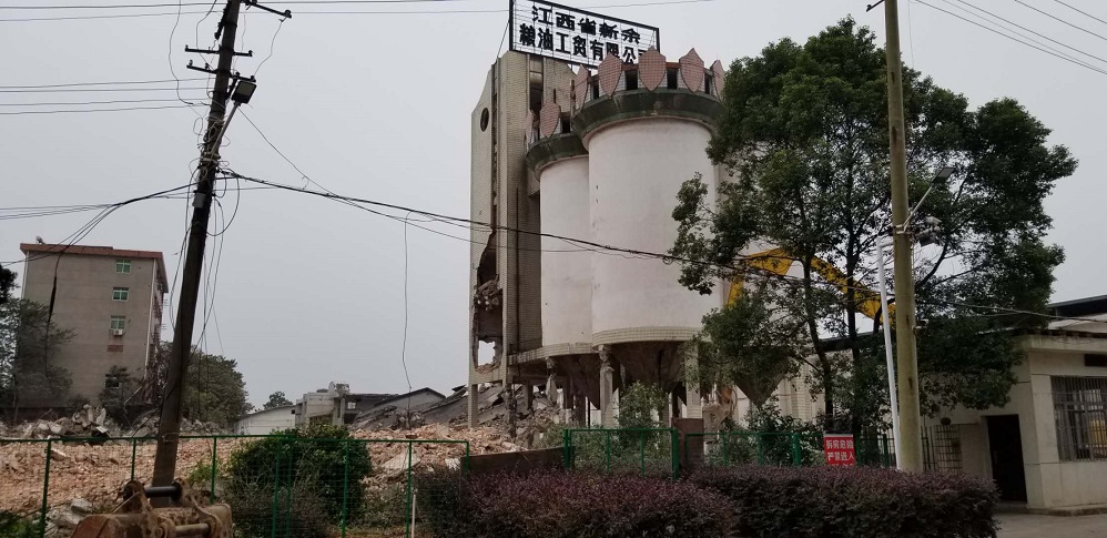 112日下午,原新余粮油工贸有限公司大米加工厂车间安全完成拆迁工作。