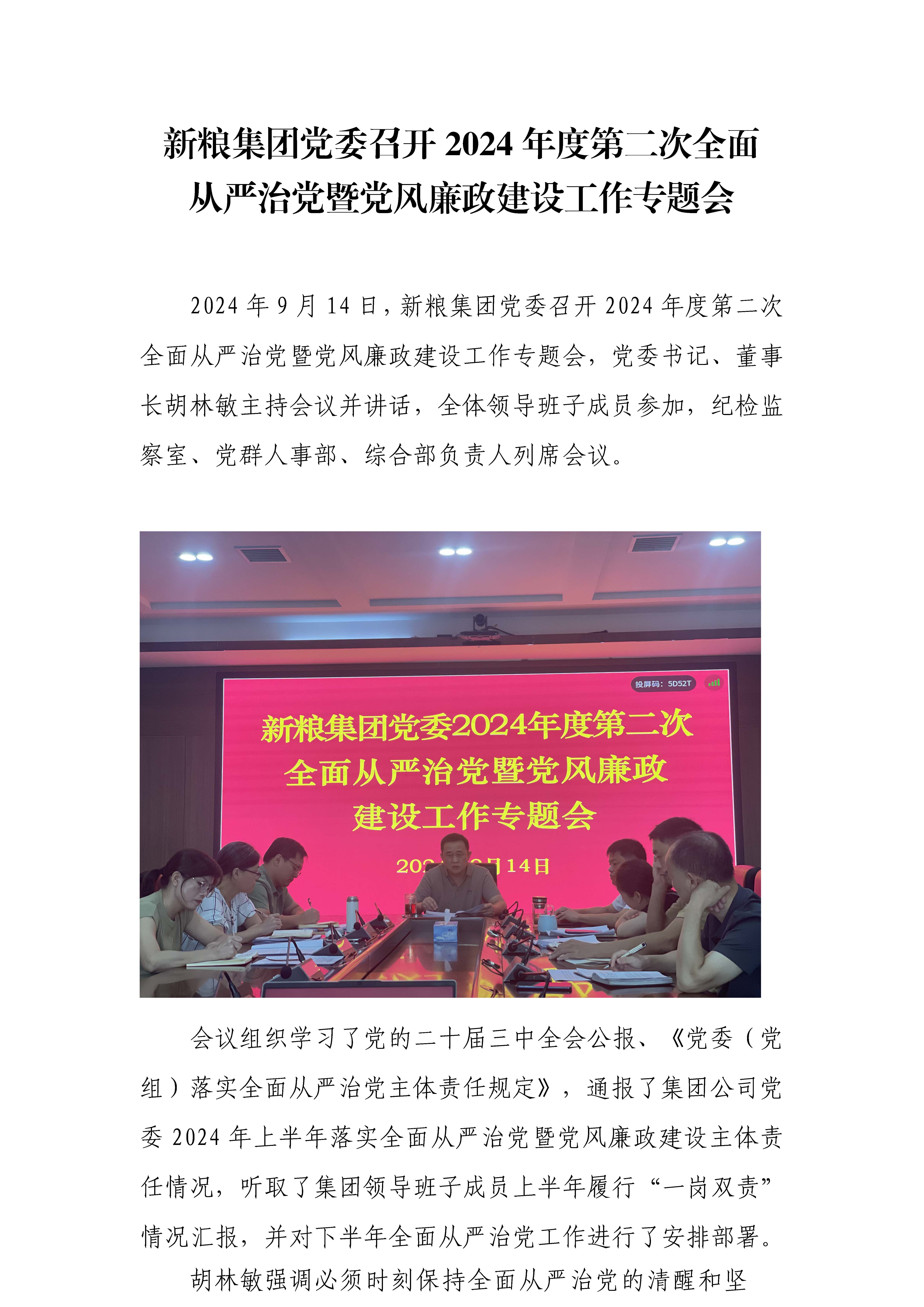 新粮集团党委召开2024年度第二次全面从严治党暨党风廉政建设工作专题会