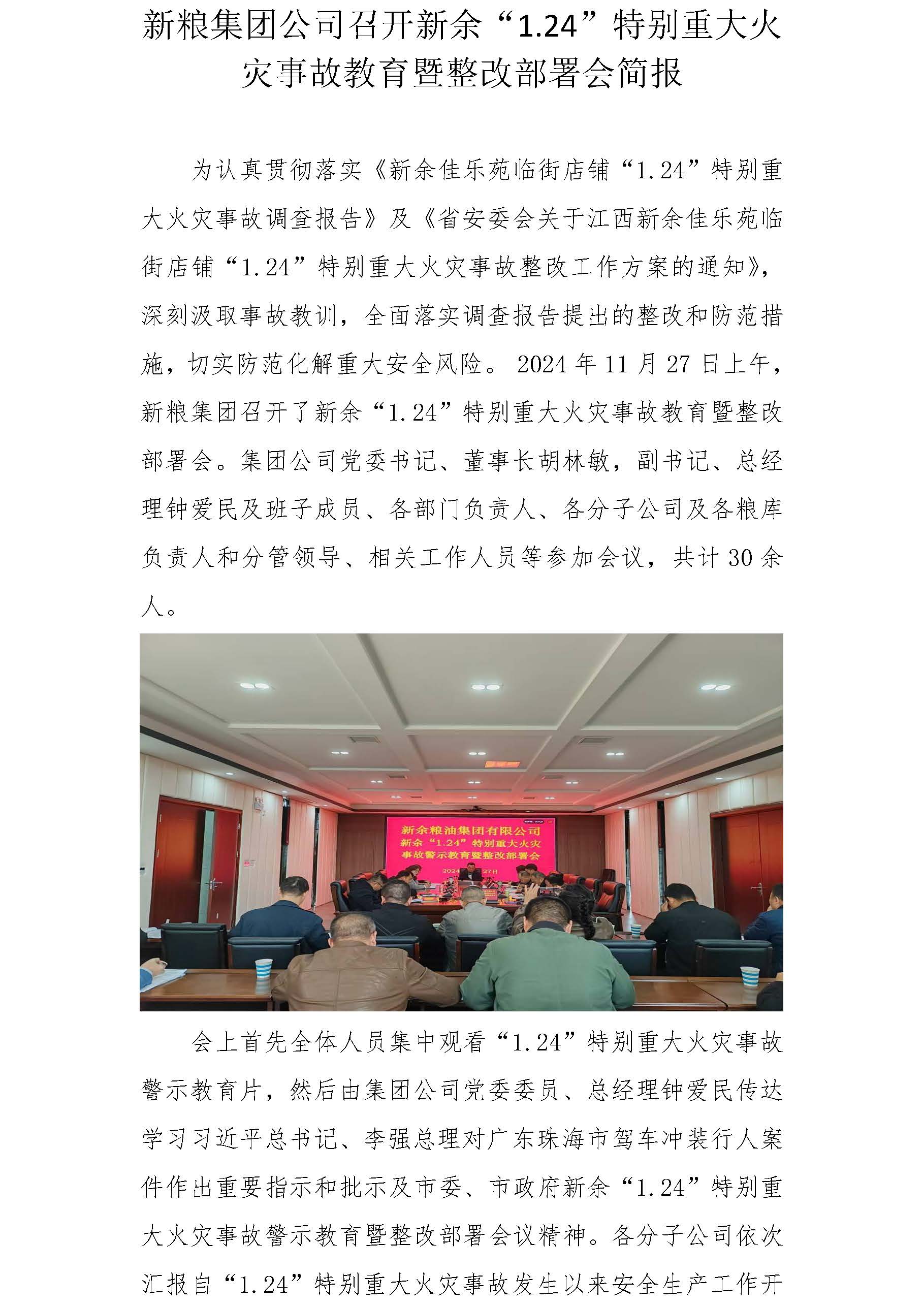 新粮集团公司召开新余“1.24”特别重大火灾事故教育暨整改部署会简报