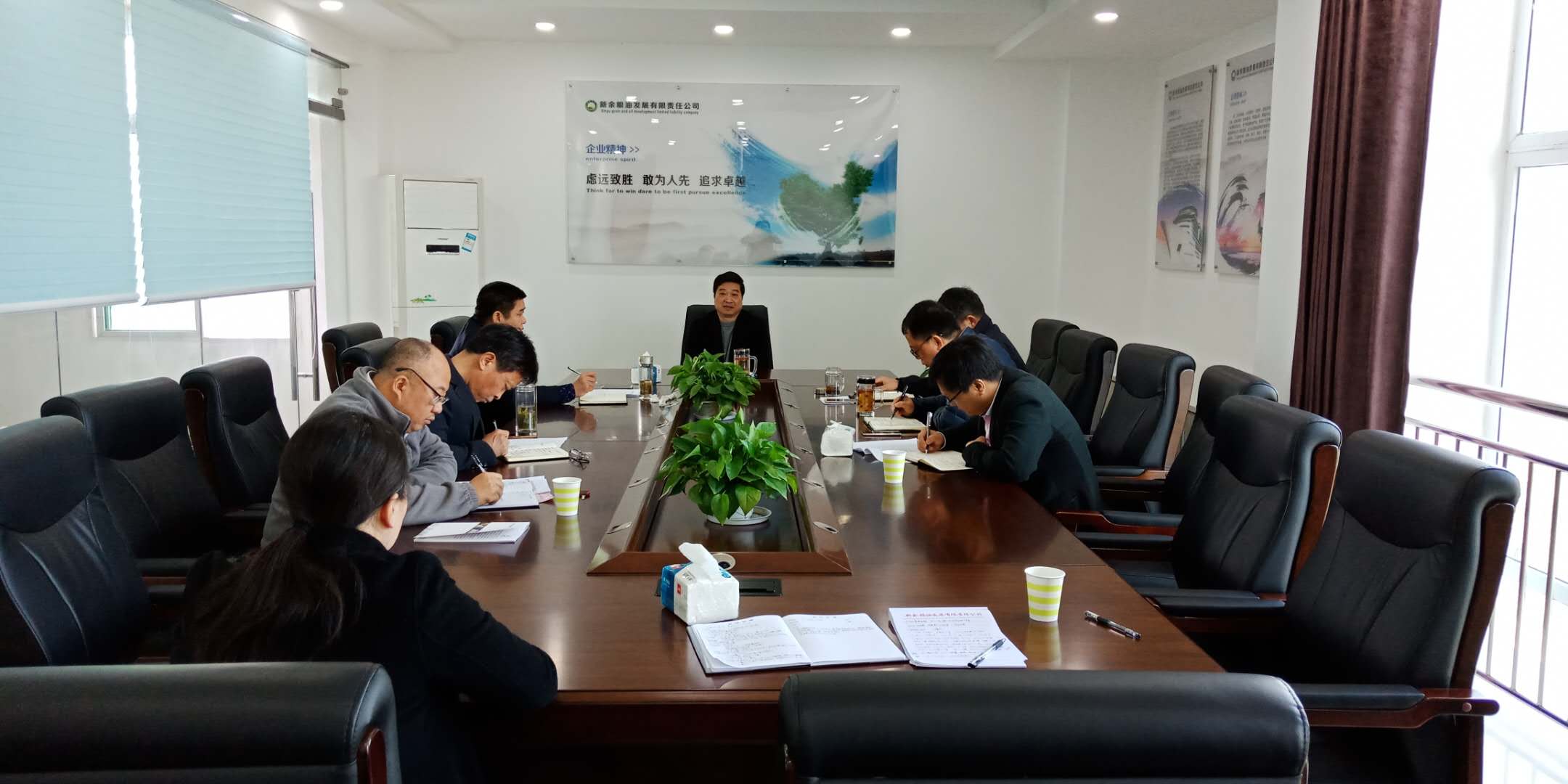 2月27日上午,市粮食局在新余粮油发展有限责任公司组织召开企业改革发展务虚会,会议由市粮食局党委书记、局长李国俊主持,党委委员、副局长刘霄,新粮公司高层管理人员参加会议。