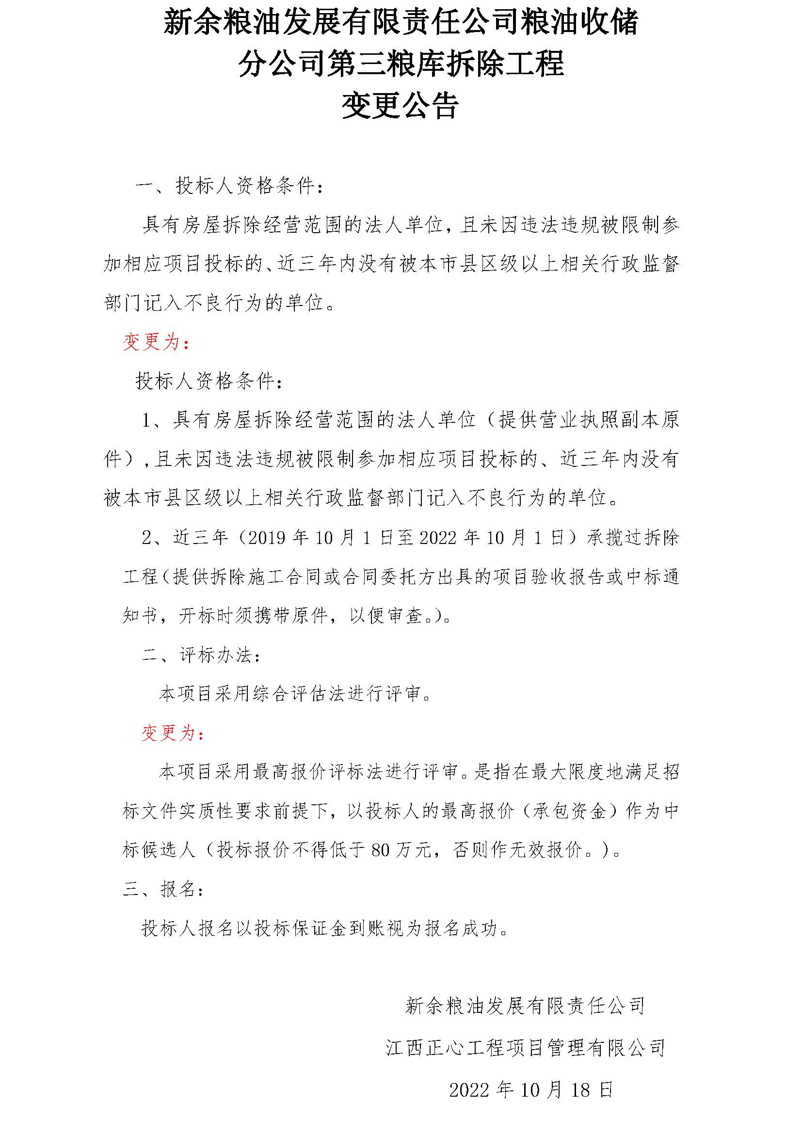 拆除工程变更公告