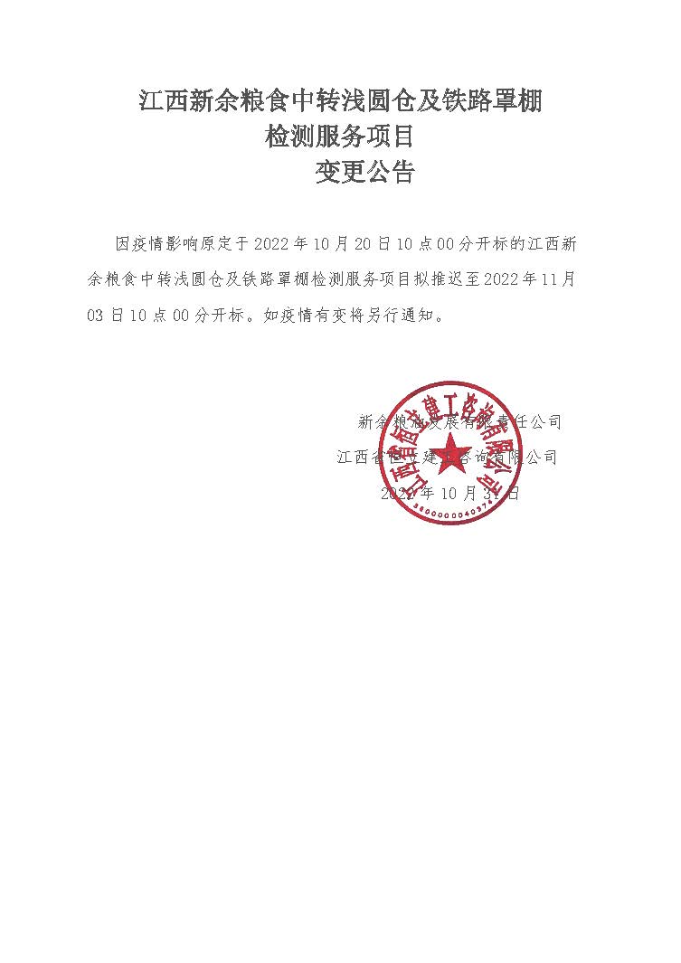 江西新余粮食中转浅圆仓及铁路罩棚变更公告